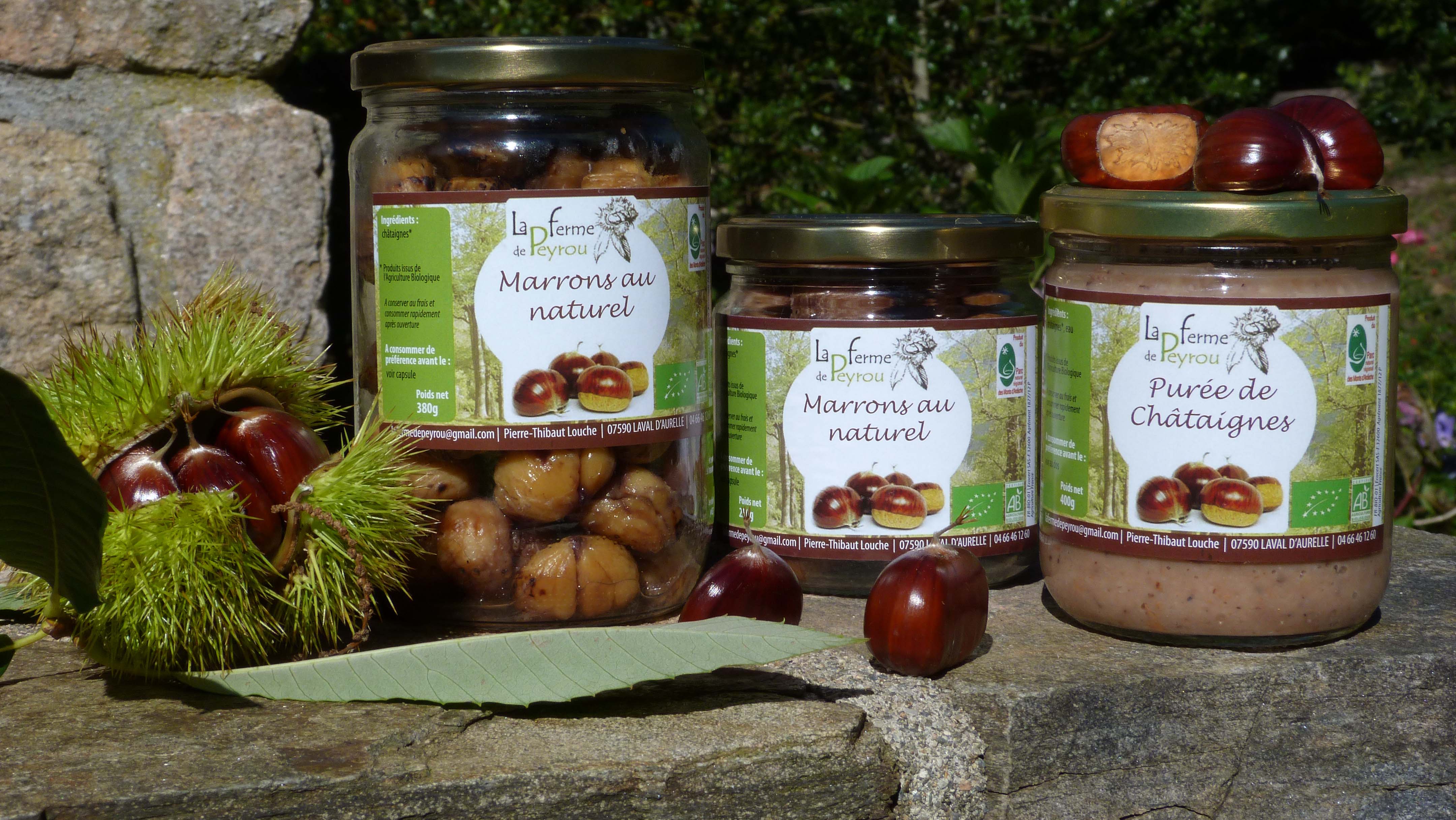 Située à Laval d’Aurelle, Isabelle et Pierre-Thibaut Louche vous accueillent au sein de leur châtaigneraie emblématique d’Ardèche. Ils vous proposent leurs produits à base de châtaignes : crème, farine… ainsi que d’autres confitures…
